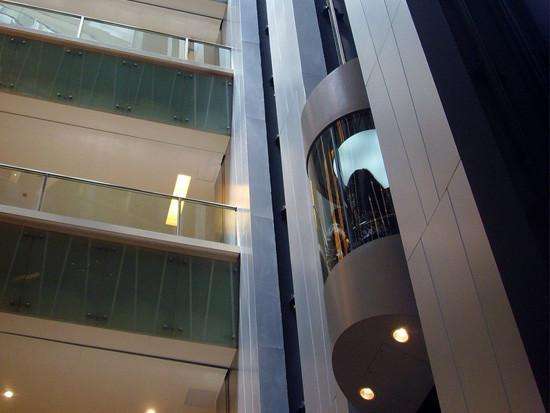 观光电梯一种以电动机为动力的垂直升降机,装有箱状吊舱,用于多层建筑乘人或载运货物。有一面或几面的井道壁和轿厢壁是透明材料,乘客在乘坐电梯时,可以观看轿厢外的景物。
